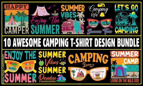 Fototapeta premium Camping T-shirt Design Bundle, T-shirt Design Bundles.