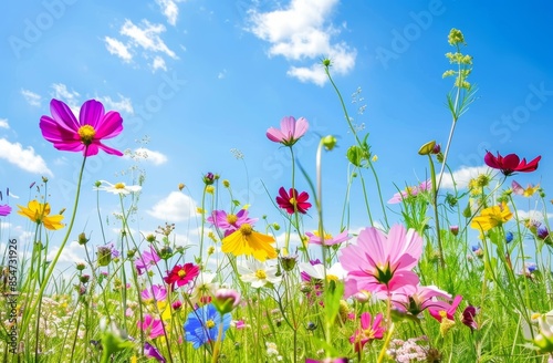 © Zbits, Obraz premium campo de flores colorido con un cielo azul