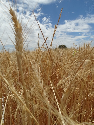 © Rosa, Obraz premium Campo de trigo con el cielo azul de fondo