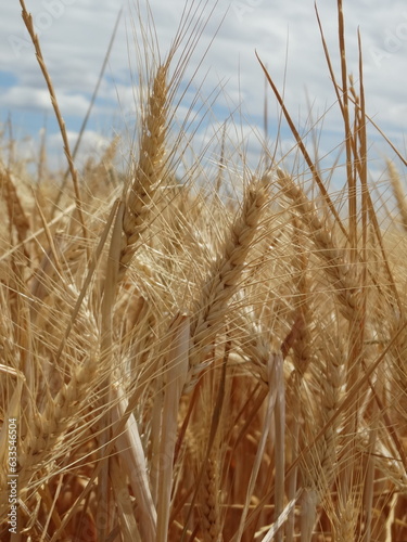 Fototapeta premium Campo de trigo con el cielo azul de fondo