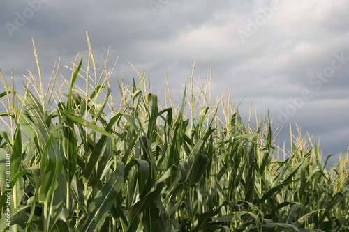 © saratm, Fototapeta premium Campo di mais in estate con temporale