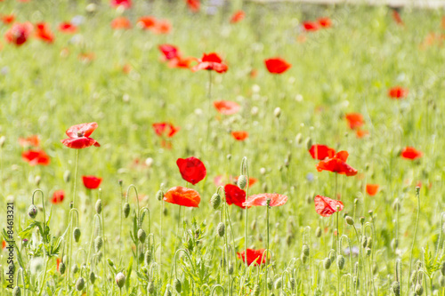 © fabiocolombo, Fototapeta premium campo di papaveri