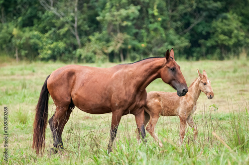 © Nicole Ciscato, Obraz premium Campolina mare with foal
