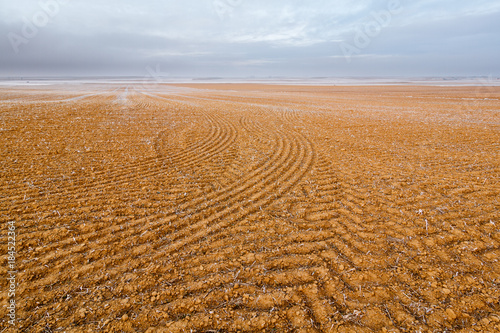Naklejka premium Campos de cultivo en invierno. Reserva Natural de Lagunas de Villafáfila, Zamora.
