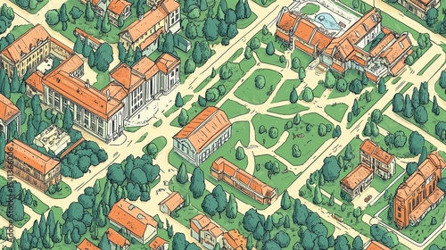 Obraz premium Campus Map: Buildings, Parks, Paths