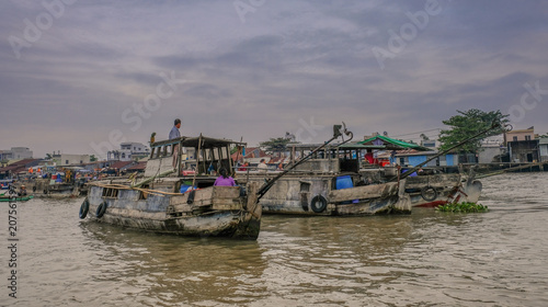 © Rafael, Fototapeta premium Can Tho, Vietnam - January 14, 2018: Sunrise with boats on the Can Tho floating market river, Mekong Delta, Vietnam
