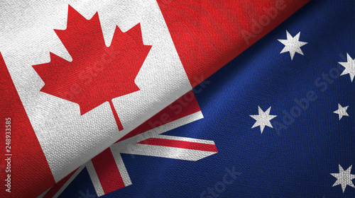 © Aleks Taurus, Fototapeta premium Canada and Australia two flags textile cloth, fabric texture