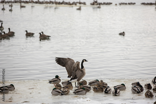 © Tanya, Fototapeta premium Canada Geese on a winter lake for migration