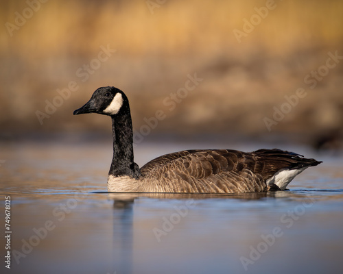 © Michael, Obraz premium Canada goose - branta canadensis - swimming in pond with evening sunlight