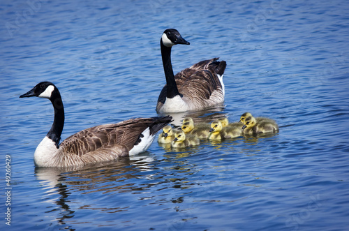 Obraz premium Canada Goose family swimming in the lake