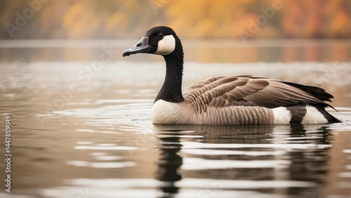 Obraz premium "Canada Goose Floating on Water – Majestic Wild Waterfowl Bird"