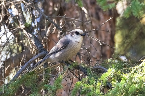 Obraz premium Canada Jay on Tree in Yukon Forest