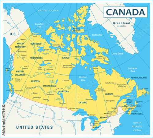 © Porcupen, Fototapeta premium Canada Map - highly detailed vector illustration