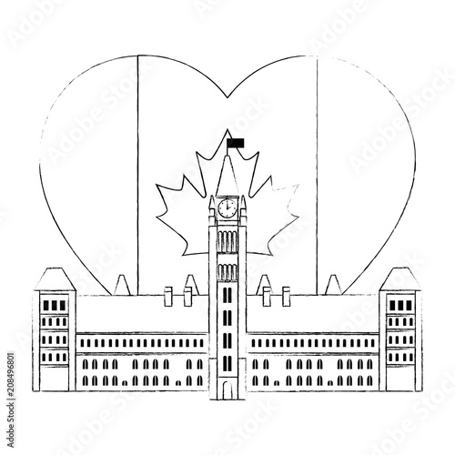 Obraz premium canadian parliament building with heart flag vector illustration design