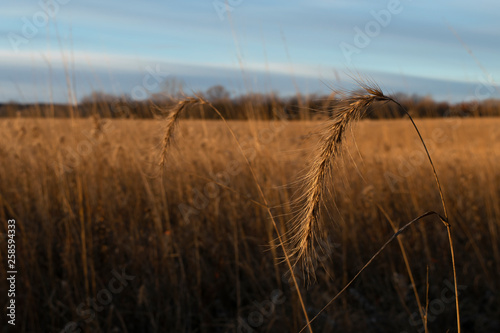 © Anna, Obraz premium Canadian wild rye grasses in native prairie restoration in early morning sunlight