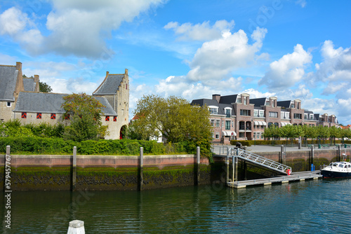 Obraz premium Canal at the old harbor in the old town of Zierikzee, Netherlands
