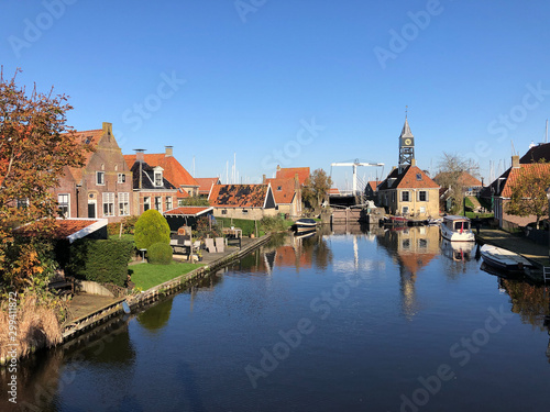 © TravelTelly, Naklejka premium Canal in Hindeloopen during autumn