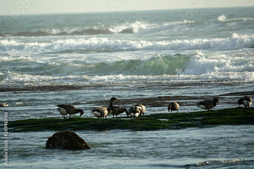 Fototapeta premium canards et oies sauvages au milieu des mouettes
