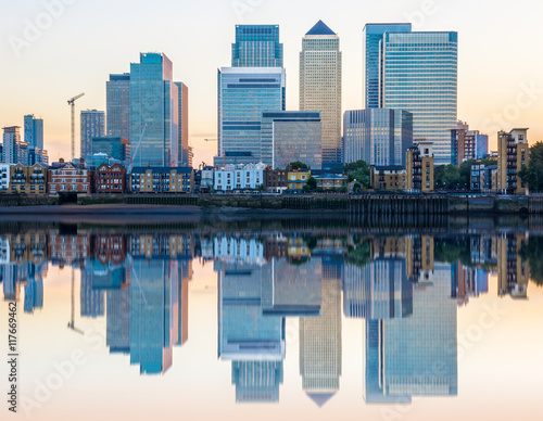 Obraz premium Canary Wharf, financial hub in London at sunset