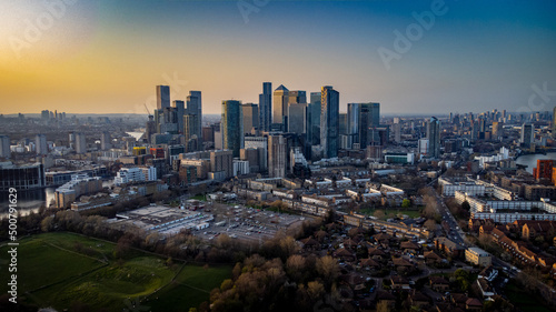 © Marnix, Fototapeta premium Canary Wharf London sunset aerial view