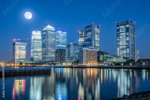 © Md, Naklejka premium Canary wharf skyline reflections on the water