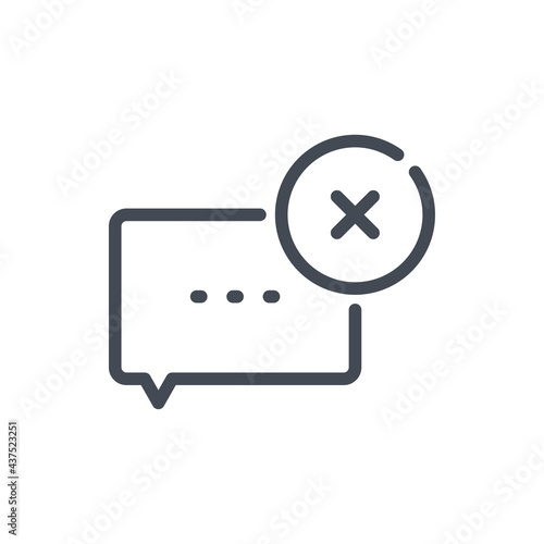 © NikWB, Fototapeta premium Cancel chat box and delete message line icon. Remove and remove comment vector outline sign.