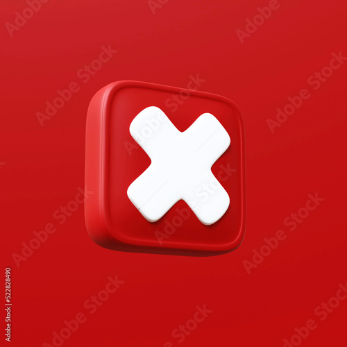© Ioanna, Obraz premium Cancel cross icon isolated over red background. 3d rendering.