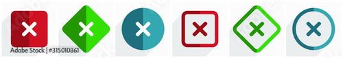 © Alex White, Obraz premium Cancel icon set, flat design vector illustration in 6 options for webdesign and mobile applications in eps 10