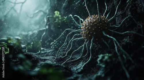 Obraz premium Cancer cell invading tissues with tentacles in microscopic view