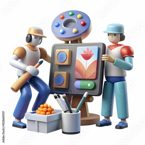 Obraz premium Candid Shot of Canadian Artists Collaborating with AI Tools for Digital Art Creation: Capturing the Creative Process & Artistic Progress in Photo Stock Concept