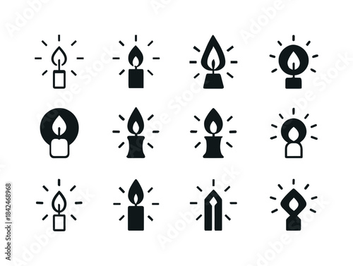 © Настя Шевчук, Obraz premium Candle Light Logos. Candle Light. Icon set. Set Logo of candle l