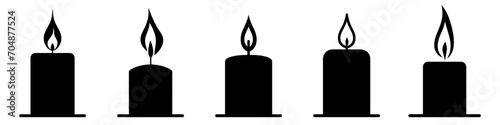 © chekman, Obraz premium Candle silhouette. Set of black candle icons.