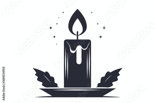 Obraz premium Candlelight with Holly Leaves and Stars on White Background Design