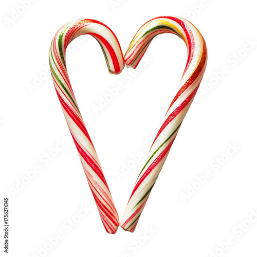 © Auon, Fototapeta premium Candy cane heart shaped ornament isolated transparent background sweet Christmas decoration