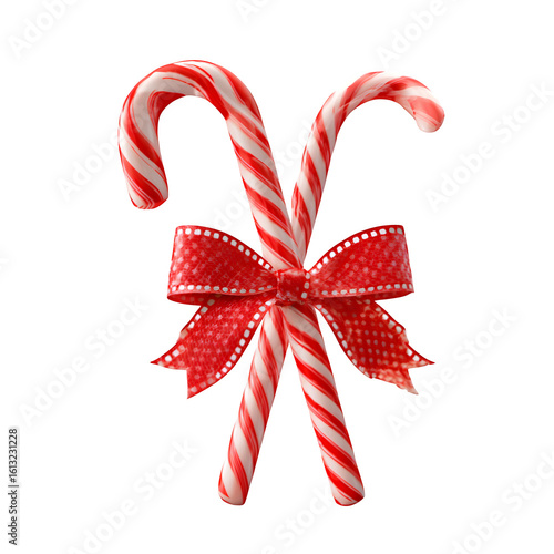 Fototapeta premium Candy cane with ribbon isolated on transparent background