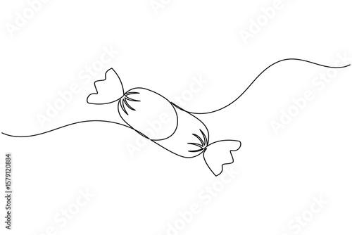© Line Art King, Fototapeta premium Candy continuous one line drawing on white background in minimalist style outline vector illustration