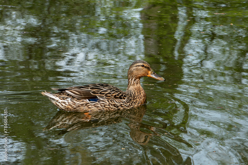 Fototapeta premium cane colvert nageant au milieu de reflets