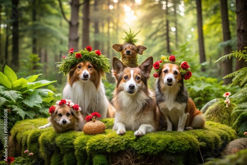 © Sirinporn, Obraz premium Canine Garden Companions Whimsical Woodland Themes