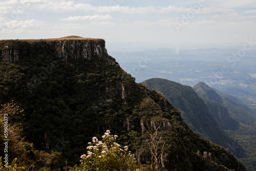 © Franciele, Fototapeta premium Canion no Brasil com céu azul e formações rochosas com grandes montanhas