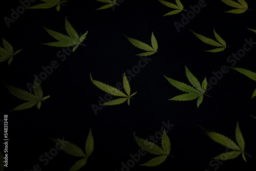 © Алексей Доненко, Obraz premium cannabis leaf pattern on black background texture