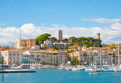 © IRStone, Fototapeta premium Cannes, WŁOCHY. Le Vieux Port w Cannes. Port i stare miasto na Riwierze Francuskiej, dom na Festiwal Filmowy w Cannes