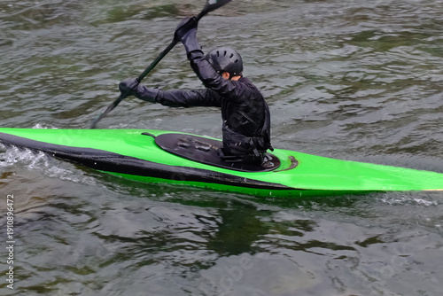 © fotoXS, Fototapeta premium Canoe Slalom Athlete Paddling Through River Gates