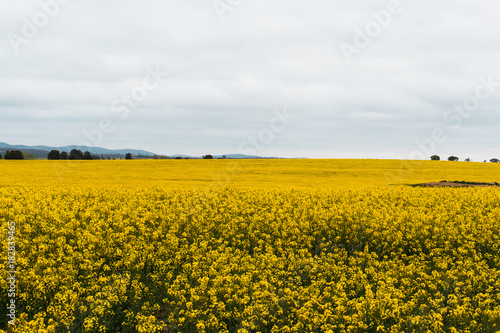 Fototapeta premium Canola field blooming in yellow.