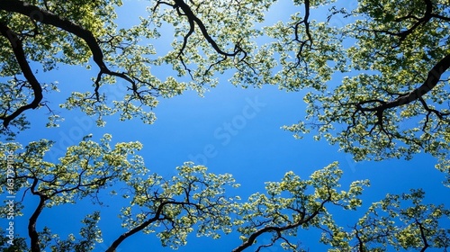 © Cintarsih, Fototapeta premium Canopy, Blue Sky, Spring Leaves