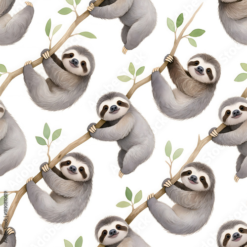 © TeeKaye, Obraz premium Canopy Life – Three-Toed Sloth