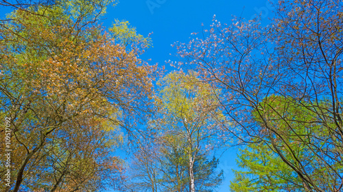© Naj, Fototapeta premium Canopy of trees in sunlight in spring