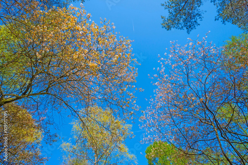 © Naj, Fototapeta premium Canopy of trees in sunlight in spring