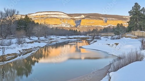 © Cinto, Fototapeta premium Canyon River Winter Sunrise Reflection.