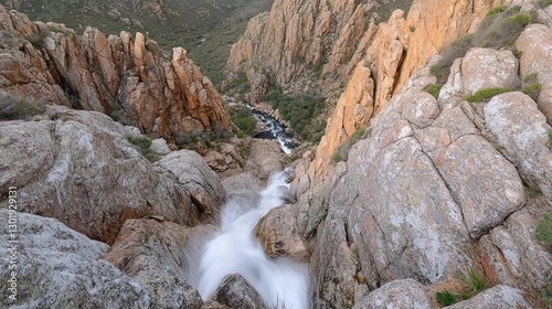 © creativeideh, Obraz premium Canyon waterfall scenic vista, flowing water, rocks, nature