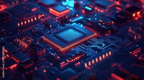 © vectorwin, Fototapeta premium capacitor illuminating circuit board
